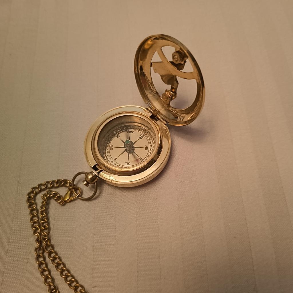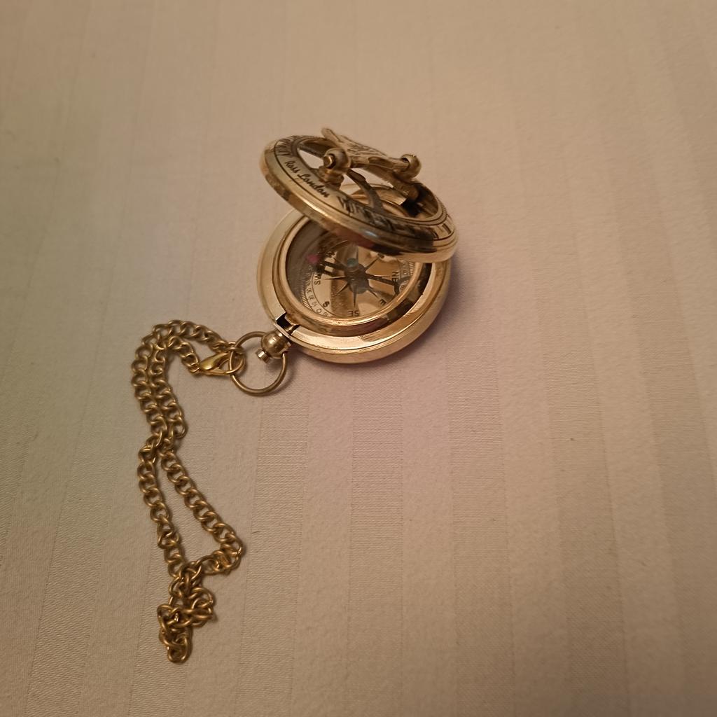 Brass Sundial Compass Polished Push Button Lid Collectible Gift