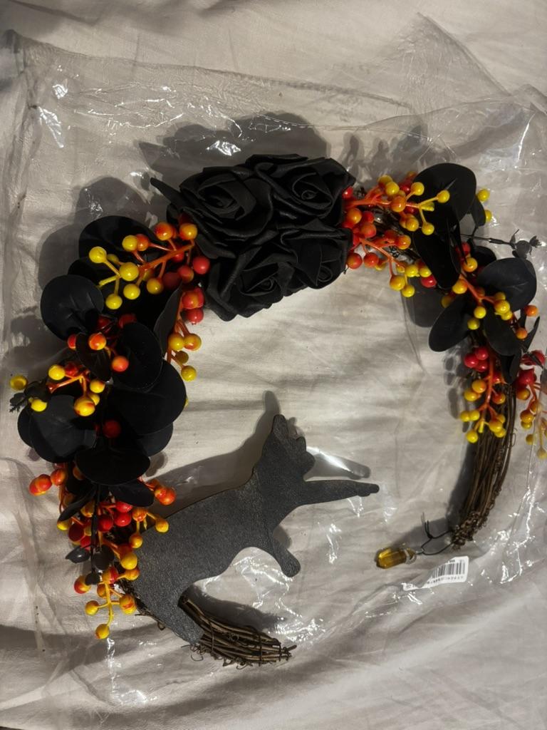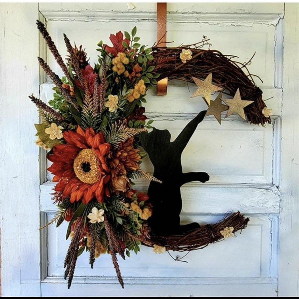 Halloween Moon Cat Garland with Rose Black Decorations Halloween Garland Halloween Wreath Door Decor