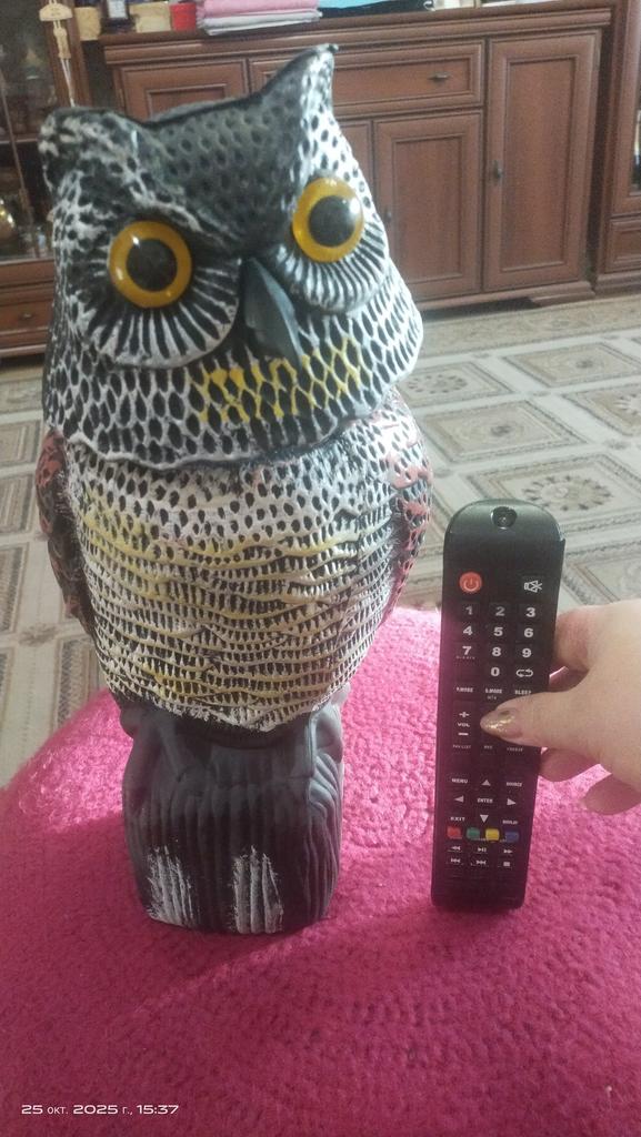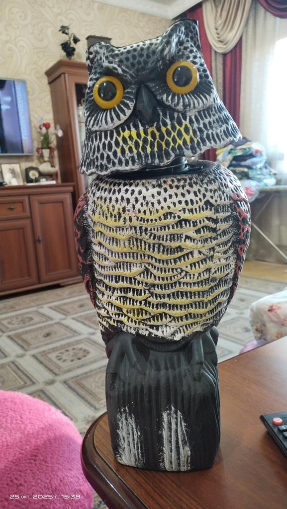 Horned Owl Decoy and 360 Degrees Rotating Head Owl Statue To Scare Birds Away for Patio Yard Garden