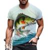 Men's Outdoor Fishing T-shirt, Casual Breathable Top, Short Sleeved, 3D Printed, Sporty and Fashionable Fitness, Large Size, Summer