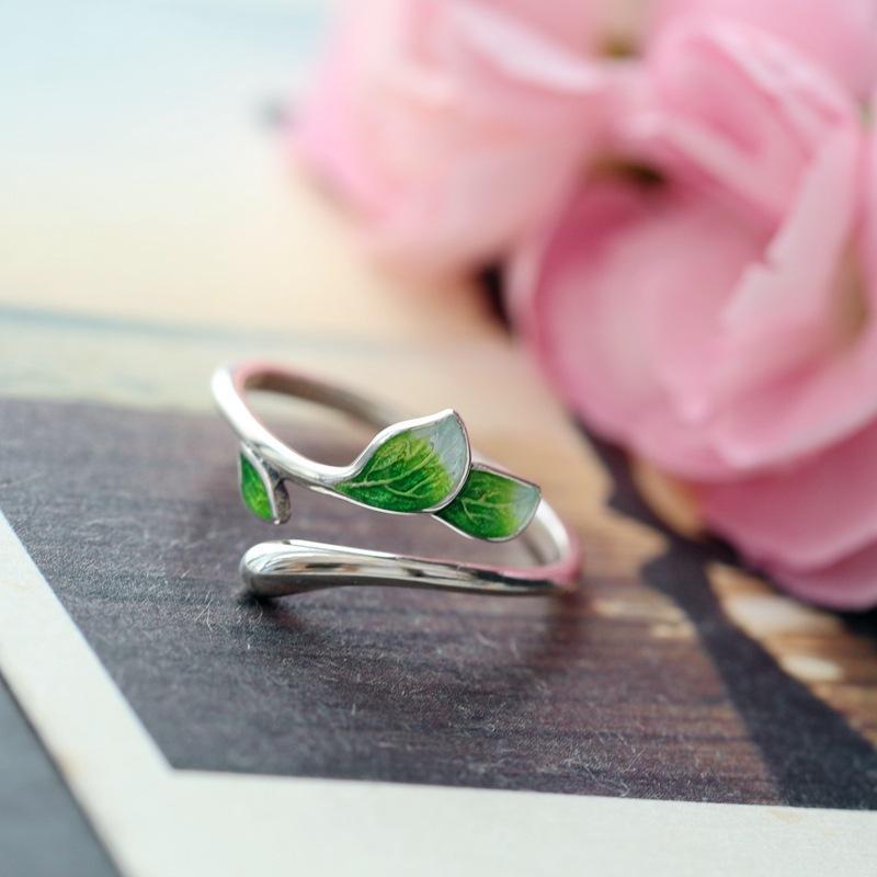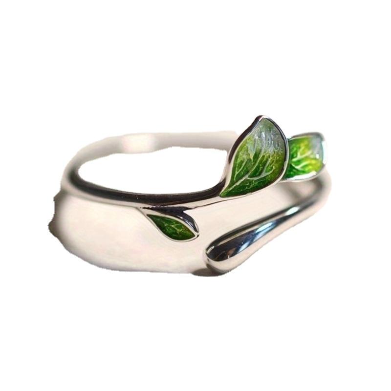 New Enamel Branch Drop Glue Ring Artistic and Fresh Burnt Blue Ring Fashionable and Retro Women's Holiday Party Gift Accessories