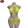 Sexy Love Underwear Perspective Split Two Piece Set Fishing Net Hollow Neck Hanging Loop Bikini Lingerie for Women Micro Bikini