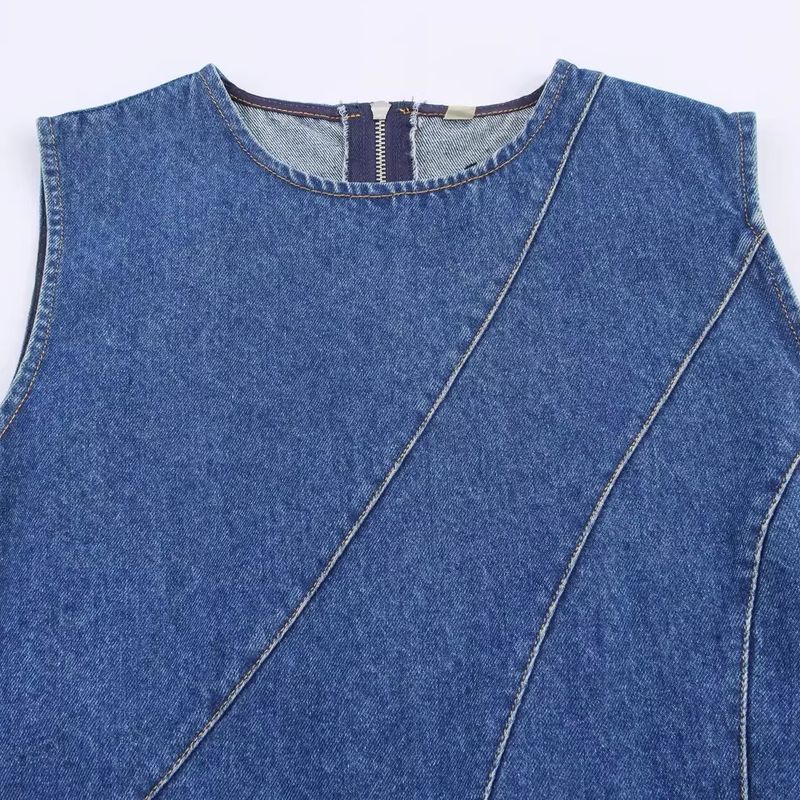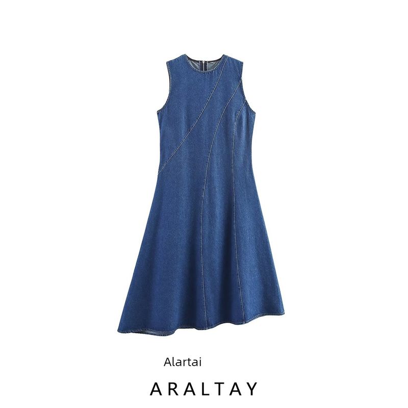 Araltay New Arrival Fashion Style Women's Clothing Fashion Seam Mid-Length Sleeveless Denim Dress 066408004
