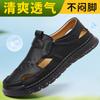Sandals Men's New Summer Outer Wear Hollow Breathable Bag Head One Pedal Hole Shoes Driving Beach Leather Sandals