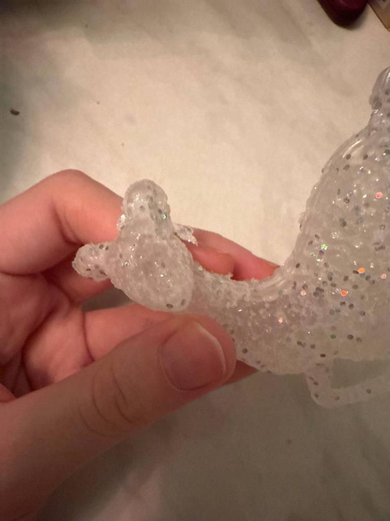 The reindeer has a part of the coating chipped off its head, very unpleasant, will have to glue it.