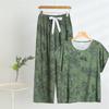 Summer Cotton & Rayon Slimming Outfit: Short-Sleeve Top & Floral Straight-Leg Pants for Middle-Aged and Elderly Women
