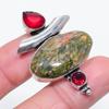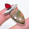 Natural Unakite, Garnet Gemstone 925 Sterling Silver Jewelry Pendant 1.58" z8t50