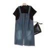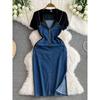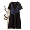 Spread Lady Sense Fake Two-Piece Skirt! Women Washed Cotton Patchwork Front Zipper Obvious Pocket Blue dress Summer