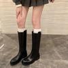 Grape mother studiolee color matching fashion round head thick sole thick heel medium long tube thin knight boots women autumn and winter