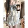 Kumikumi French Sweet Style Sexy Lace Sling Dress Women's Summer Waist-Tight Slim Looking A- line Skirt Skirt