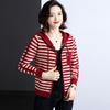 Mom's Cardigan Spring Autumn and Winter Striped Collar Jacket New Women's Knitted Top