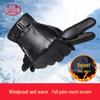 Winter PU Leather Plus Velvet Warm Gloves Men's Windproof Cycling Gloves Touch Screen Waterproof Gloves Cold-proof Warm Gloves