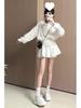 2025 Spring/Autumn Women's A-Line French White Long-Sleeve Shirt Dress