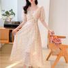 Summer Sweet Slimming Knee-Length Chiffon Long Dress Temperament Waist-Cinching V-Neck Fairy-like Flowy Dress