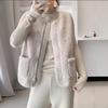 Women Winter Plus Size Fluffy Faux Lambwool Vest Single Breasted Fleece Elegant Sleeveless Cardigan