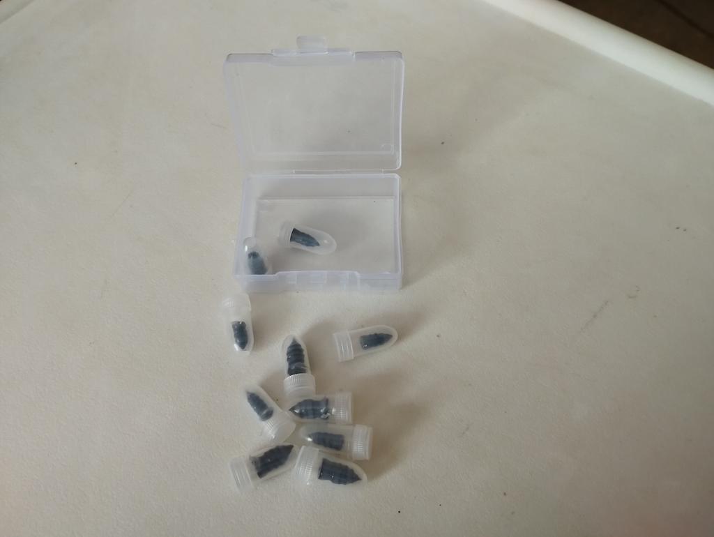 Accessori utili e accuratamente imballati per la riparazione dei pneumatici sul campo. Consiglio di avere una scatola del genere nella tua auto.