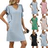 Women's Fashion Casual Solid Color V-neck Versatile Ruffle Sleeve Pullover Dress