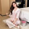 Spring Autumn Pajamas Women's Silk Sexy Sling Nightgown Long-sleeved Trousers Home Clothes Thin Ice Silk Three-piece Suit Summer