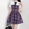 French Summer Plaid Puff Dress with Bow Tie and Short Sleeves