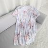 2025 Summer Floral Cotton and Silk Midi Dress - Short Sleeve, Loose Fit Nightgown