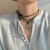 Drawable Black Rope Women Necklace Adjustable Pendant Necklaces New Sweater Chain Women
