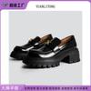 2025 spring new fashion outer wear thick heel small leather shoes women's platform solid color Mary Jane glossy fashion single shoes women