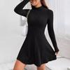 Long Sleeve Knitted Dress for Women Autumn Winter Slim Round Neck A-line Bottoming Dress Black Korean Style Clothing Y2k