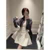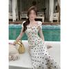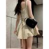 Apricot square neck suspender dress, women's spring innocence, waist short skirt, casual women's polka dot print women