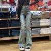 Street tassel rough edge splicing high waist micro pull jeans spring and autumn new slim flared horseshoe jeans