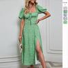 Casual Flower Printed High Waist Dress Summer Sexy A-line Short Sleeve Split Party Dress For Women 2023 Fashion Vestidos 25280