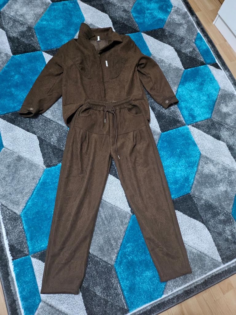 Күзгі қысқы қалың кордюр жиынтықтары Сәнді қосу барқыт жылы қысқа күрте + Харен шалбары екі бөліктен тұратын әйелдерге арналған күнделікті шалбар костюмдері