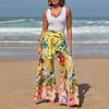 Women Summer Boho Palazzo Pants High Waist Wide Leg Floral Printing Casual Trousers With Pockets