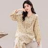 Pajamas for Women Spring and Autumn Cotton Silk Long-sleeved Cotton Gauze Suit Home Clothes Suit