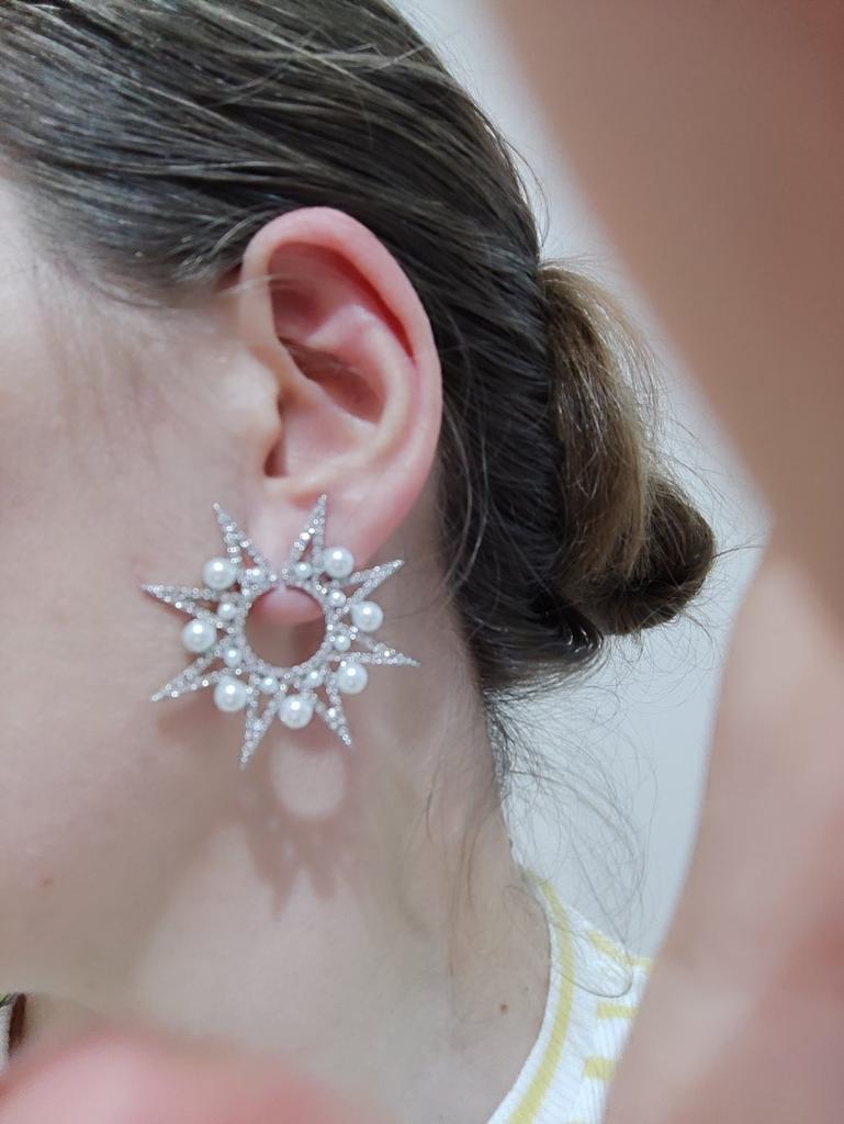 Mote geometri overdrevne øredobber perle innlagt drill luksuriøs edel stjerne solsikke øredobber