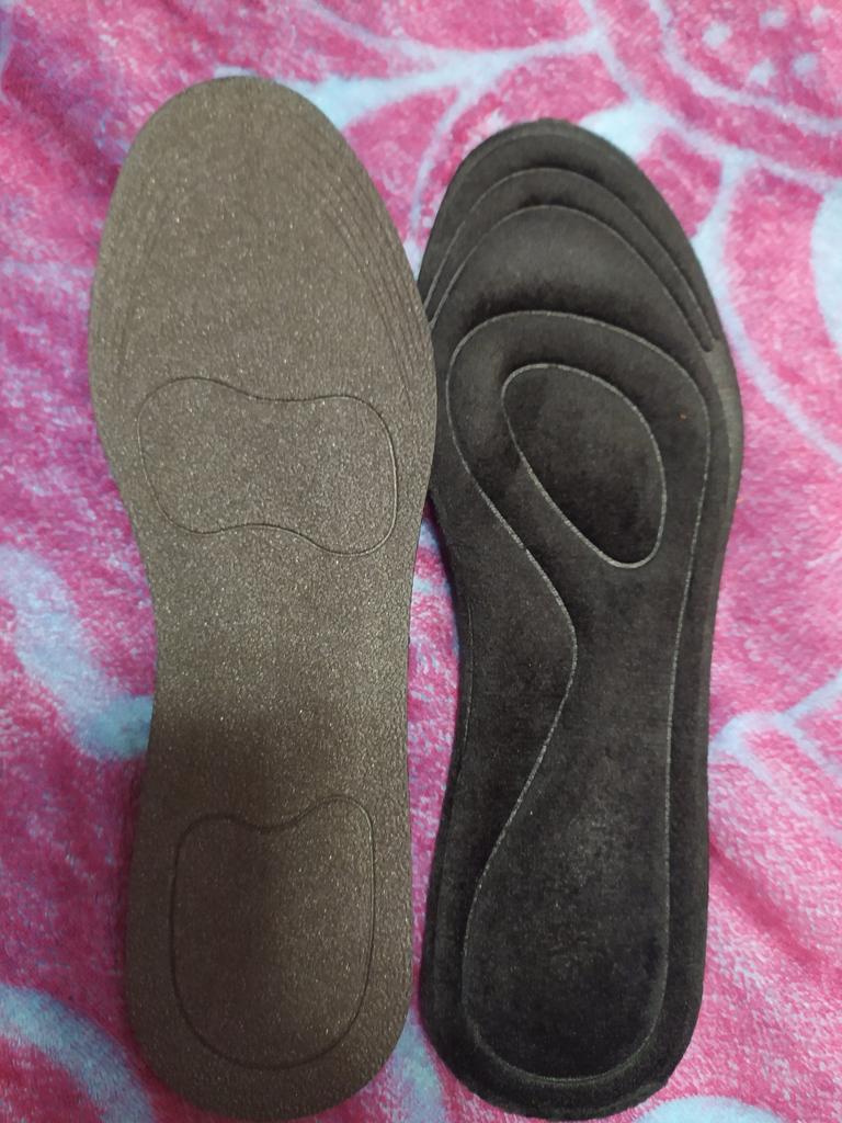 Jeg tok de største innleggssålene, størrelse 45-46 (vi har 44) - litt små. Selve innleggssålene er ganske tynne, vi forventet tykkere. Vi legger dem i joggesko, og de glir mye på midten når de går.