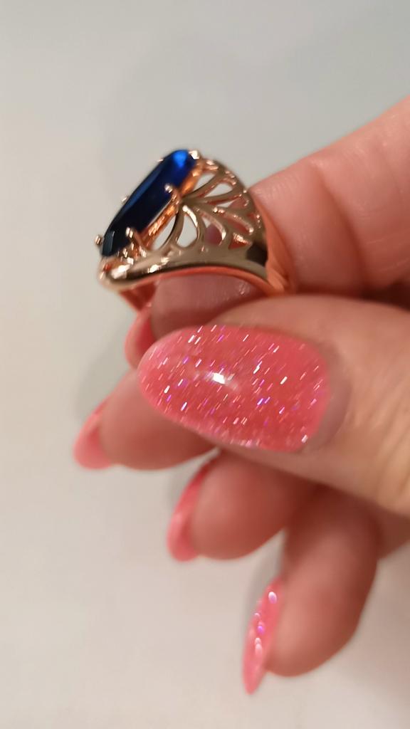 Geometrisk kuttet blå sirkonringer for kvinner Vintage tekstur motesmykker