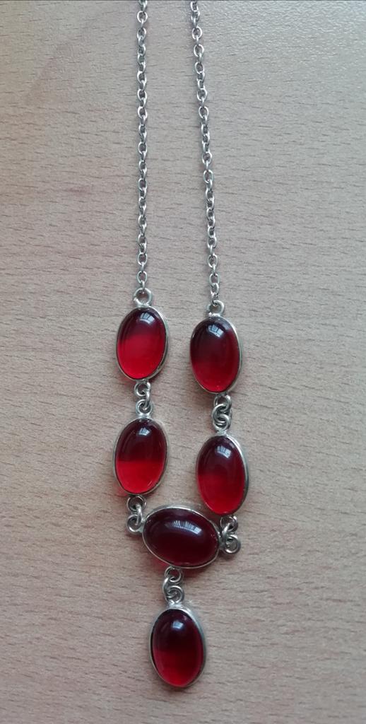 Rød karneol edelsten 925 sterling sølvbelagt halskjede smykker EJJ-N10