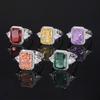 Klassisk Farget Zirkon Damering Skinnende Farget Skatt Smykker Firkantet Høy kvalitet AAA Zirkon Vielsesring Jubileumsgave Fargerike Zirkon Smykker