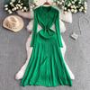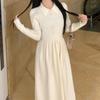 Strikket kjole Kvinner Høst og Vinter Ny High Sense Elegant midje Klem Slanking Temperament Lapel Genser Kjole