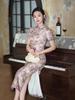 Champagnefarget dame-cheongsam middels lengde vår og sommer hverdags kjole