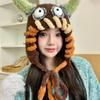 Cute weird little monster plush pullover hat women's fall and winter big head circumference ear protection wool cap niche Thunderbolt hat