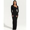 European and American women's elegant black irregular collar long sleeved slim fit sexy spicy girl autumn and winter party long skirt