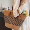 Spring trendy contrasting color straw bag large-capacity bag women's bag 2024 new fashion shoulder bag woven tote bag