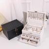 Multifunctional Jewelry Box Three-layer Leather Jewelry Storage Box with Lock Earring Jewelry Box Earring Storage Box