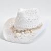 Enhance your everyday look with this stylish straw hat. Hand-woven with exquisite craftsmanship, it features delicate imitation pearls for a touch of elegance. The hollow design ensures breathability and comfort, while the brim offers sun protection.