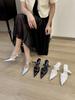 2024 summer~ pointed belt buckle thin heel belt buckle single shoes women's European and American bag head silver rear empty high-heeled sandals