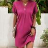 Enhance your wardrobe with this versatile Women's Dress that effortlessly pairs with earrings, necklaces, and more. Craft a chic and sophisticated look with its V-neck design and loose hem, accentuating your silhouette. This solid color dress exudes elegance and style, perfect for various occasions.