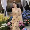 2024 Korean Style Sleeveless Ruffled Print Long Slim Fit Dress