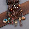 Gift Boho Statement Ethnic Jewelry Party Mala Wood Bead Buddhist Feather Pattern Nepal Necklace