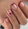 Trendy European & American Heart-Edge French Red Nail Art Set - 24 Wearable Pieces